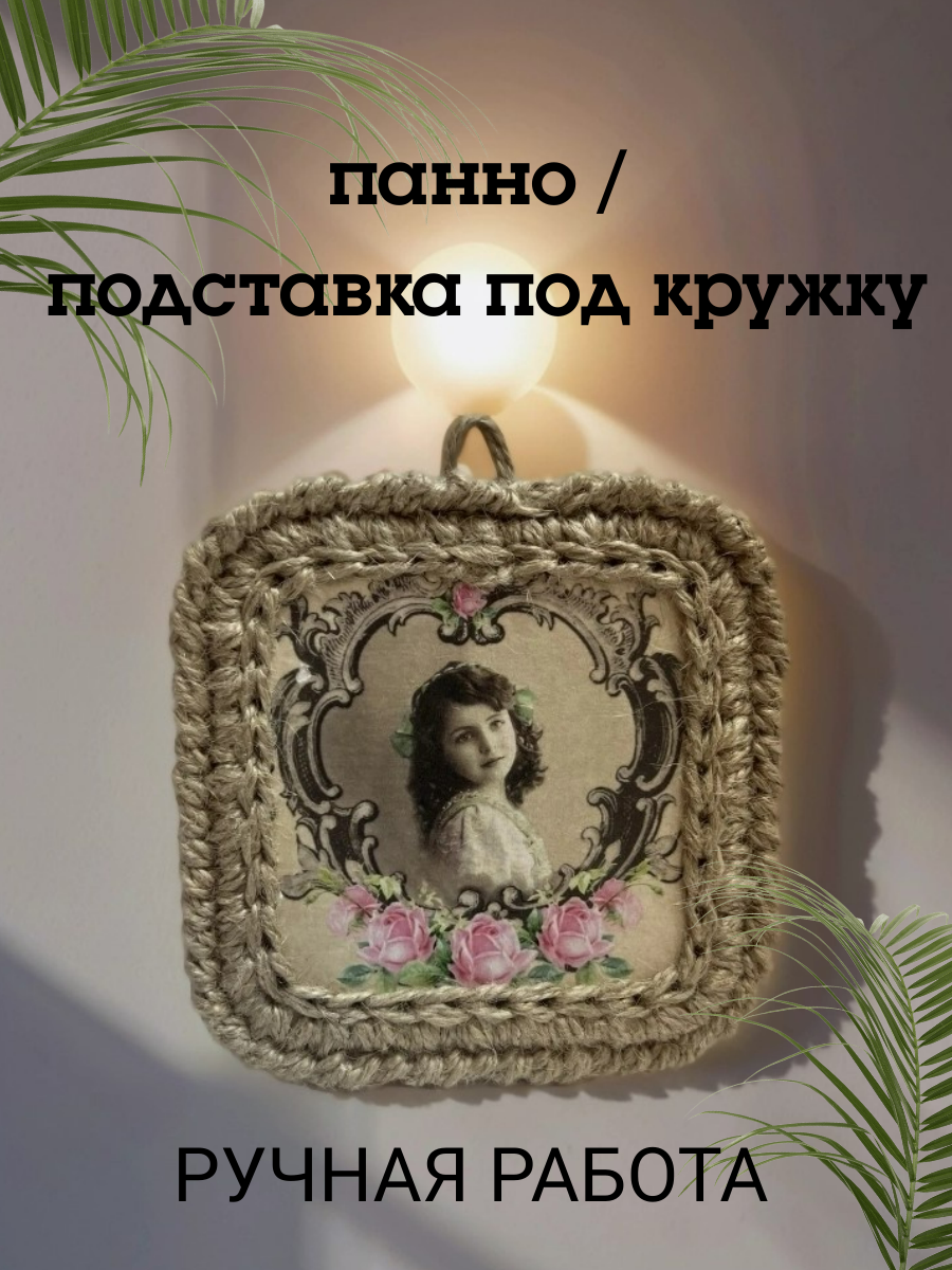 Панно-трансформер 2 в 1: декоративное украшение и подставка под кружку Это изделие станет ярким элементом интерьера благодаря винтажному дизайну и натуральным материалам.